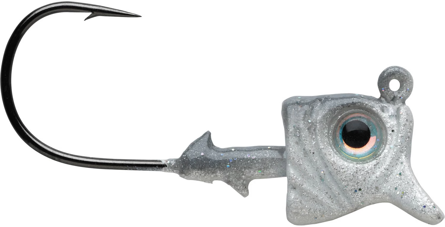 Introducing the first “walk-the-dog” style jig head of its kind, the 1st Gen Jaw Dropper’s action is truly remarkable. The mouth opened lead lip design gives the jig head a left-to-right action as you hop it off the bottom, giving bass an action they have never seen before. Affix any straight tailed worm, soft jerkbait or ned style plastic to the 1st Gen Jaw Dropper, and watch it come to life. The harder you snap your line, the more erratic the action. Featuring an ultra-sharp Mustad® Ultra Point™ hook, the 1st Gen Jaw Dropper will hook anything that comes in for a sniff, and the lip is designed to come through rocks and gravel with fewer hanging ups. Vertical jigging for suspended fish with the 1st Gen Jaw Dropper is deadly. A slight twitch of the rod sends the Jaw Dropper dancing in a “figure 8″ motion, and the 90-degree line tie will keep your bait perfectly horizontal, perfect for tempting weary, cold water bass.Utilize the 1st Gen Jaw Dropper as a swimbait head and a few slack line twitches will have your bait darting left to right, producing reaction strikes you would never get with a standard swimbait head. Perfect for 2″-3.5” swimbaits, the 1st Gen Jaw Dropper is the ultimate finesse swimbait head.Available 4 to a pack in 5 colors in 3/16oz and 1/4oz sizes.Mustad® UltrapointTM HookMouth Opened Lead Lip DesignInset 3D eyes