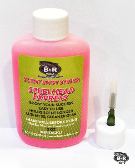 - The BnR Tackle Steelhead Express Scent Shot is a 2 ounce bottle of steelhead, trout, and salmon fishing attractant scent.