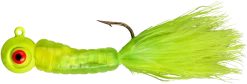 The most alluring fish-catching characteristics across the jig family come together in the popular Fuzz-E-Grub: a soft plastic grub with a hair tail pre-rigged on a lead head jig. The hair produces tons of underwater action, even in cold water. Fuzz-E-Grubs are very effective when fished plain, or tip them with a minnow, crawler, leech, or other favorite live bait. Can be vertically jigged or cast and retrieved. Bass and walleye love ’em! Available in 10 colors and 1/8 and 1/4 ounce weights.