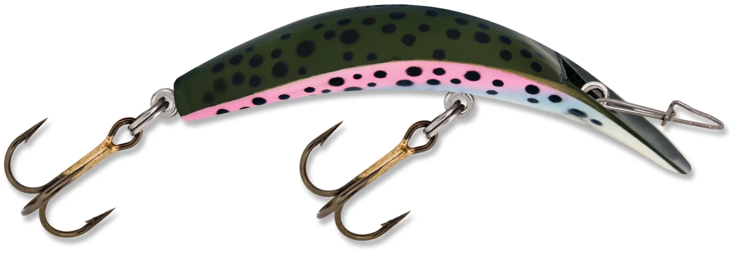 The Luhr-Jensen Kwikfish X-Treme K9X is a 2 3/4 inch strong, durable, full-throttle, wide-action lure that dives up to 10 feet and challenges gamefish both small and large. Great for when you want a deeper diving lure when fishing deep water or fast current without needing a lead weight or diver. For maximum success, pinch the eye on the face of the plug to achieve an even side-to-side action, or pinch the eye in the opposite direction that the lure is favoring, until it tracks straight. Cast or troll, fish it on its own or with cut bait tied to the belly. This lure is available in variety of excellent salmon and steelhead fishing colors and is proven to perform no matter what the conditions are.