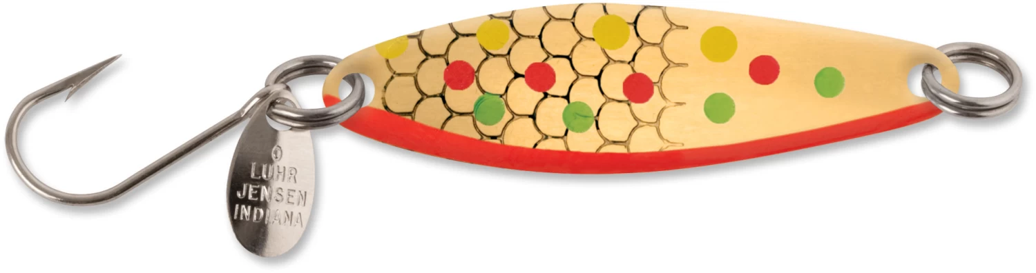The Luhr-Jensen Needlefish Spoon is a thin-blade spoon that excels at freshwater trolling. The elongated thin-blade design of the Needlefish makes it a top performer for trout trolling at all speeds. Hyperactive in nature, the addition of the metal flipper tail adds a small touch of erratic flash fish can’t resist. The Needlefish is exceptionally effective when fished plain, and also outstanding when tipped with a small piece of worm or shoepeg corn.