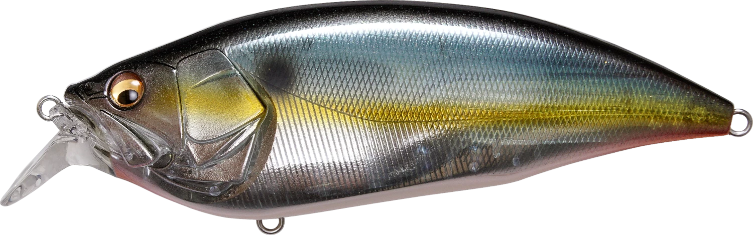 The Megabass Big-M 2.0 is the newest and shallowest running member of the Megabass’ Big-M Series of oversized, flat-sided crankbaits. Measuring 5 inches and weighing 2 ounces, this a big crankbait designed for catching big bass in the 6 foot depth range. It uses a unique scoop-like bill design that channels water to produce a hard rolling and flashing action, making the most of its flat-sided body design.