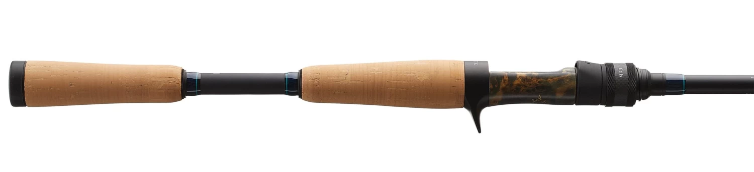 This unique manufacturing technique is then further elevated with premium features and components, including: Natural bird’s eye peacock wood reel seats, ergonomic aluminum trigger grips, polished line guides, hand-drawn graphics/detailing, and custom rod sleeve.