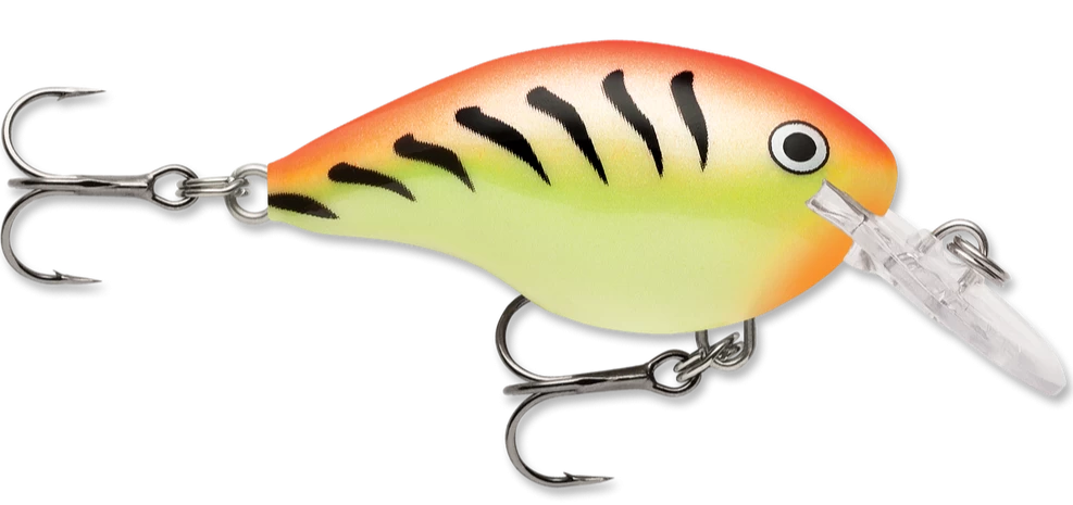 The Rapala DT4 (Dives-To) series of crankbaits dives fast to a preset 4 foot depth and stay in the “strike zone” longer than any than other crankbait on the market. Made from the top seven percent of balsa wood, this consistently perfect wood combined with carefully placed internal weights, tapered fuselage and thin tail design creates the ultimate crankbait action, found only in the DT family. Ultra-thin polycarbonate lip digs the bait down quickly to desired depth. Swimming with a side-to-side action only balsa crankbaits can achieve, the DT cranks deep, yet pulls with ease.